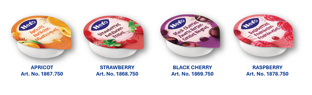 Hero Foodservice expands its portion portfolio with the launch of a new range of convenient 20g (0.71 oz) plastic fruit spread portions, now available in four popular flavors: